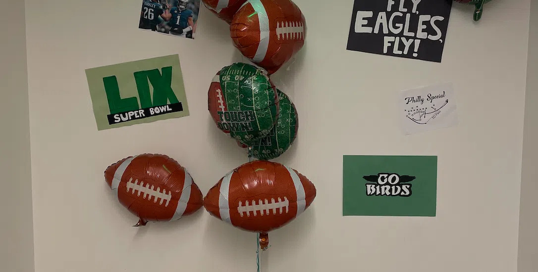 At The Nest 1324, we celebrated in true Philly fashion. Our lobby transformed into an Eagles haven, decked out with painted posters, green balloons, and plenty of team spirit. Residents gathered to watch history unfold, sharing cheers, high-fives, and maybe even a few happy tears as the final seconds ticked down.